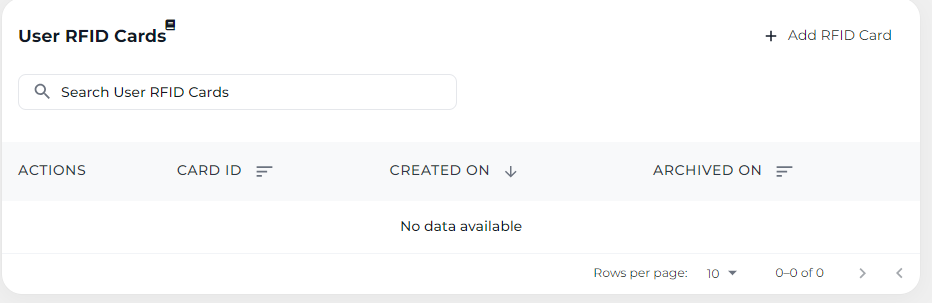 Click + **Add RFID Card** at the upper right side.  Add an RFID Card and fill in the Card ID field. You can also indicate the Card label field but this is optional and hit **Submit.**