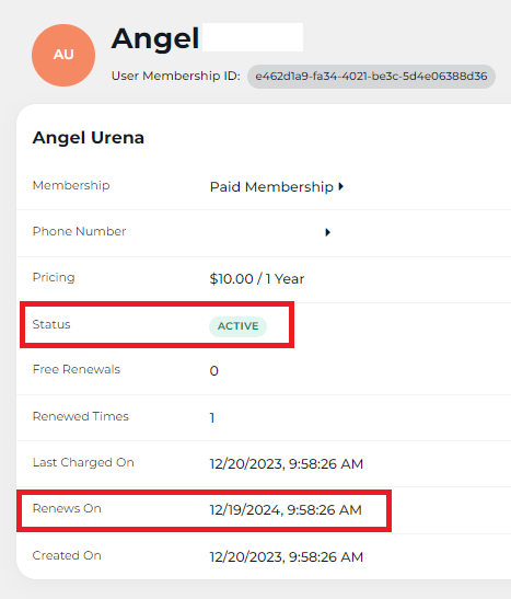 Here’s an example, The Paid Membership was archived on 12/20/2023. Even when the membership was archived, there was still a user under the Member section. The user’s membership is still Active since the membership would end after a year from the day where the user’s membership was approved (12/19/2024).